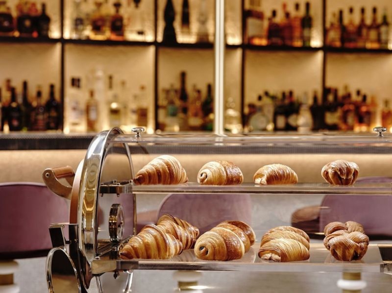 Όλα τα πιάτα ακολουθούν τη φιλοσοφία zero waste. Το εντυπωσιακό trolley viennoiserie —γεμάτο ζεστά, φρεσκοψημένα κρουασάν— συμπληρώνει την εμπειρία, προσφέροντας έναν μικρό καθημερινό πειρασμό.